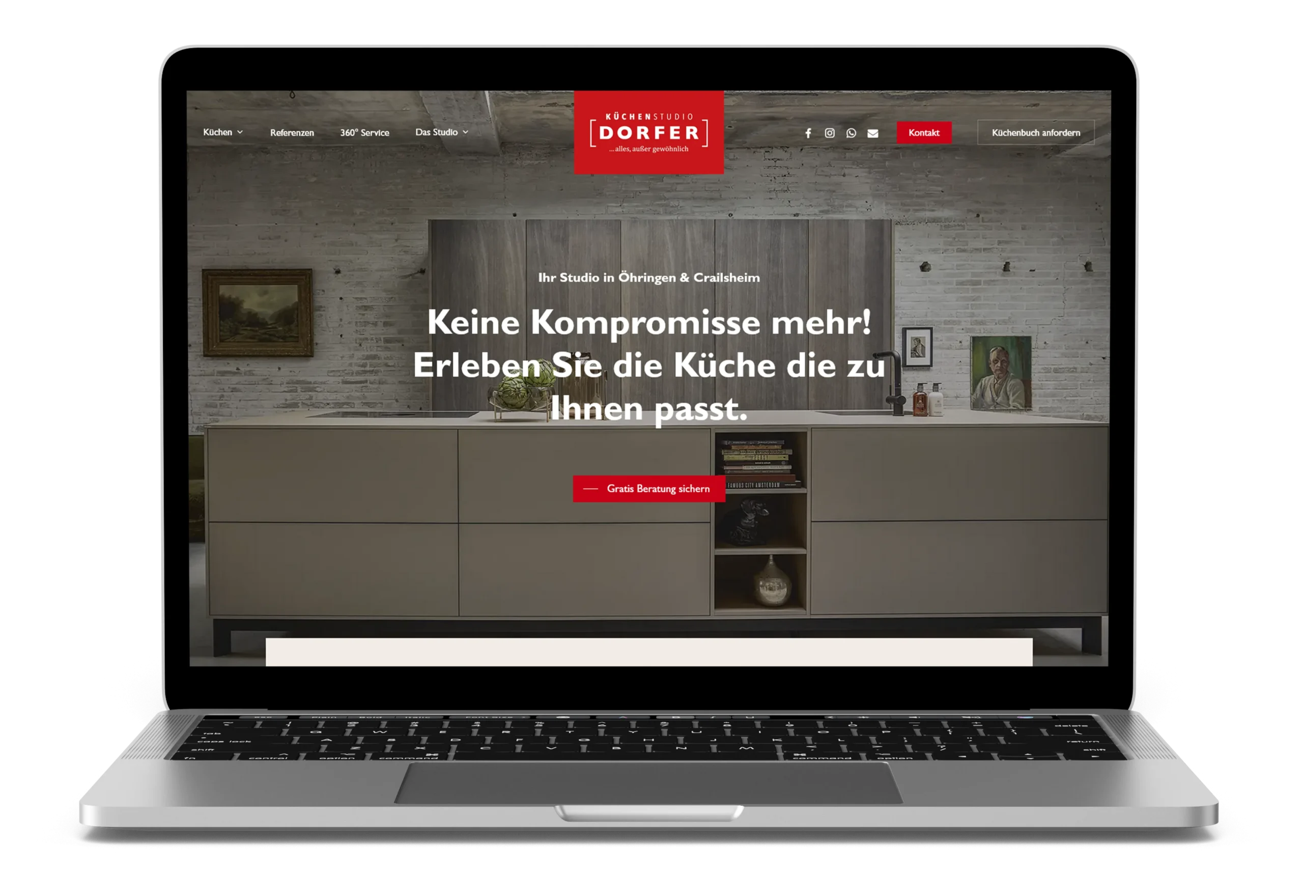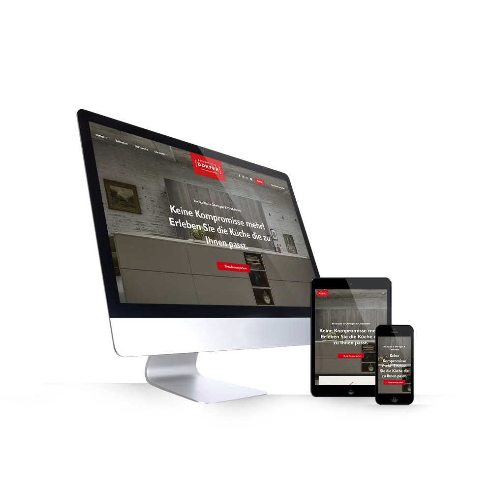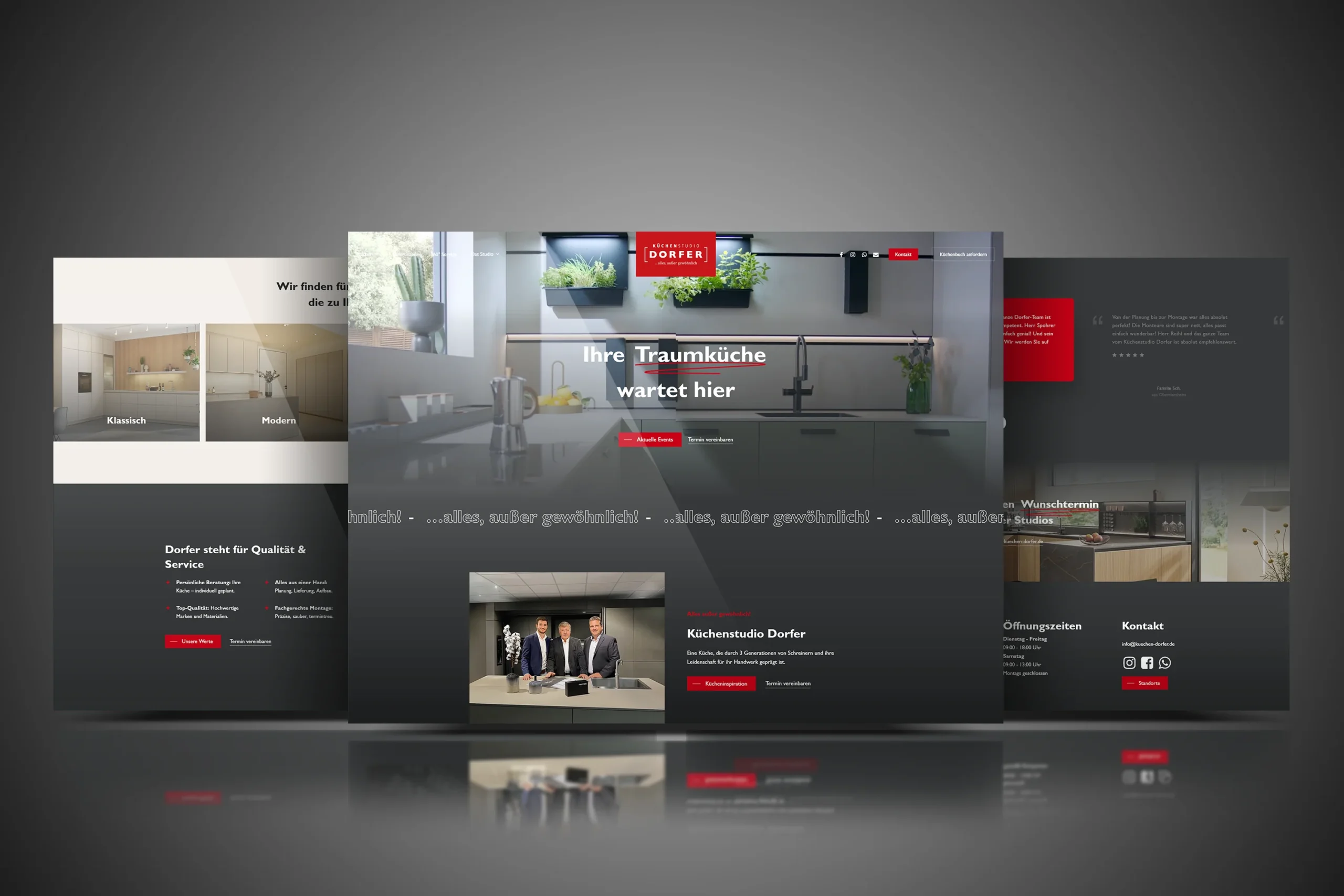Küchenstudio Dorfer steht für maßgeschneiderte Küchenlösungen und individuelle Beratung – mit Standorten, die für Qualität, Stil und Kundennähe bekannt sind. Für das Küchenstudio Dorfer haben wir ein modernes Webdesign entwickelt, das beide Studios optimal präsentiert und den hohen Anspruch des Unternehmens an Ästhetik und Funktionalität widerspiegelt.