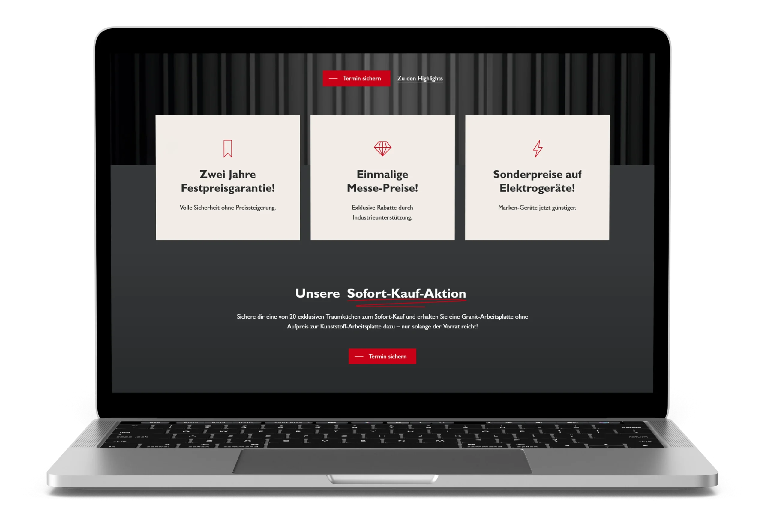 Dazu gehören eine Seite für den allgemeinen Küchenverkauf sowie jeweils eine Aktionsseite für die Hausmessen an beiden Standorten.
