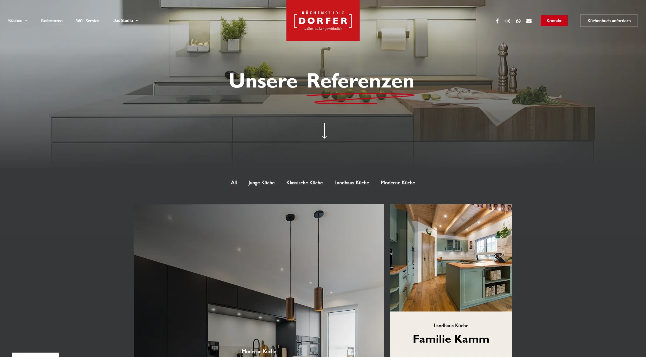 Auf der neuen Website präsentiert das Küchenstudio Dorfer ein umfangreiches Referenzportfolio, in dem realisierte Kundenküchen gezeigt werden.